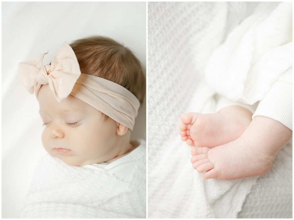 One of the biggest advantages of photographing babies in the four- to ten-week range is that we begin to see the earliest hints of personality. Sessions at this age work best when we truly let the baby lead. Blake loved being swaddled and settled almost immediately. During my own son’s two-month photos, he didn’t sleep at all—and that was just as wonderful. No matter whether your baby sleeps the entire time or stays wide-eyed with first coos and stretches, you’ll walk away with images rooted in connection and presence. There’s no single “right” outcome.