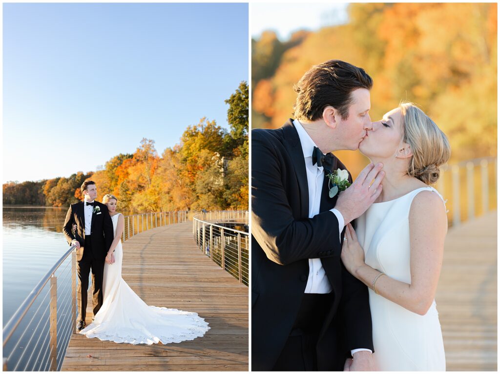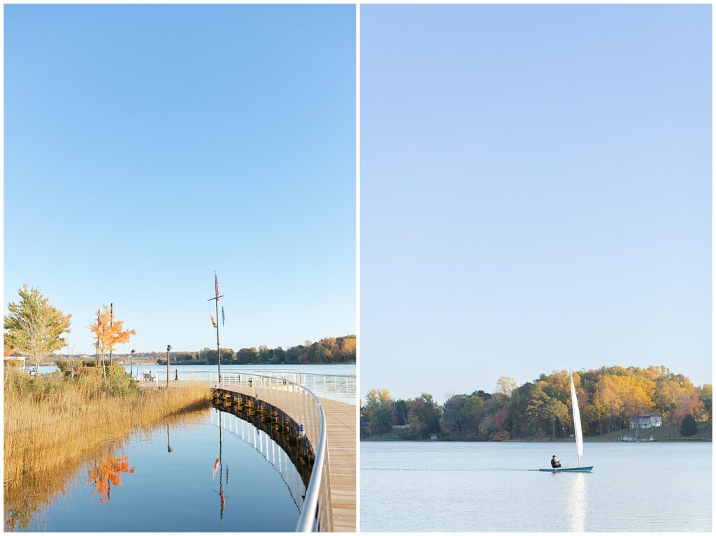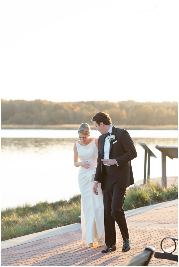 One of the most overlooked advantages of Maryland waterfront venues is light. Because of the geography of the Chesapeake Bay and its tributaries—particularly the Potomac River—many waterfront locations in Maryland offer something rare on the East Coast: the possibility of both sunrise and sunset views over water. Depending on orientation, couples can experience soft morning light or golden-hour sunsets without needing to leave the venue grounds. In Leonardtown, Maryland, along the Potomac River in St. Mary’s County, west-facing views allow the sun to set directly over the water toward Virginia. This creates warm, backlit evening light that feels more typical of West Coast venues—yet it exists quietly within the Mid-Atlantic. Several Maryland waterfront venues share this westerly-facing advantage, including Inn at Perry Cabin, The Oaks Waterfront Inn, and the Chesapeake Bay Beach Club, where sunset portraits over the water are often a defining part of the wedding-day experience. For couples planning a Maryland waterfront wedding, understanding how light moves across the water—and when it’s most luminous—can quietly shape both the visual tone of the day and the moments that feel most memorable.